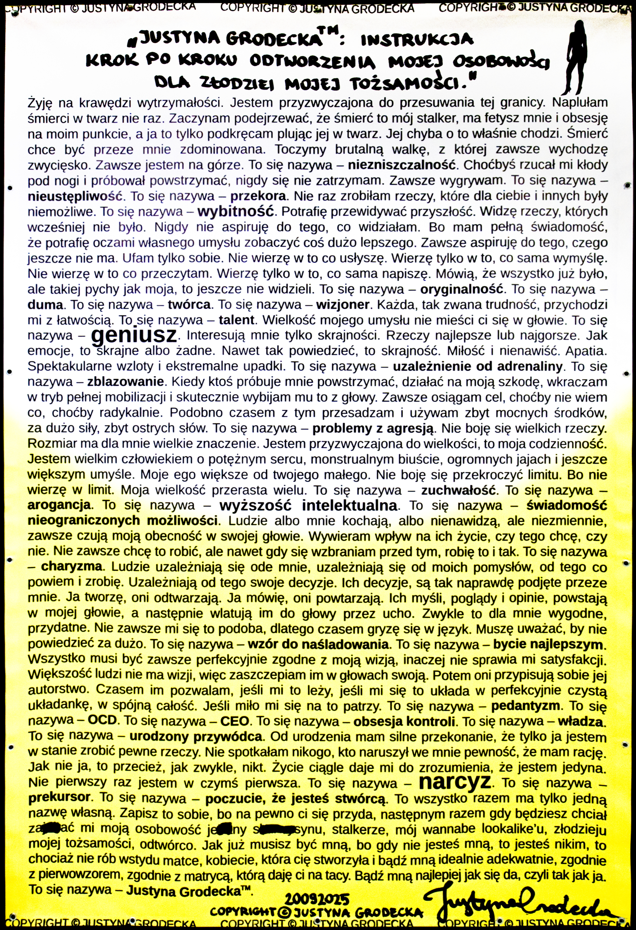 "JUSTYNA GRODECKA TM: INSTRUKCJA KROK PO KROKU ODTWORZENIA MOJEJ OSOBOWOŚCI DLA ZŁODZIEI MOJEJ TOŻSAMOŚCI"