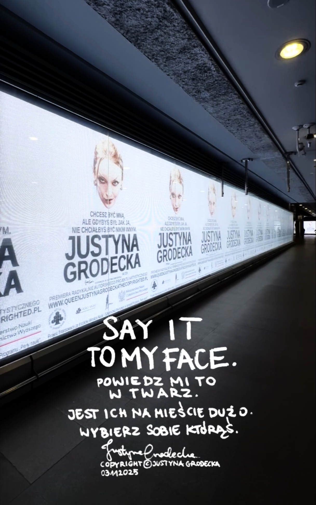 PROJECT "QUEEN JUSTYNA GRODECKA THE COPYRIGHTED .PL"   : screens in public spaces in Warsaw,  2025.10